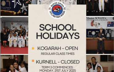 ๐นKogarah Dojang will be OPEN during the School Holidays! However, we will be closed on the following dates: Good Friday: Friday, 18th April Anzac Day: Friday, 25th April ๐ธKurnell Dojang will be CLOSED during the School Holidaysย ๐ธKurnell Term 2 Commences: MONDAY, 28TH APRIL 2025